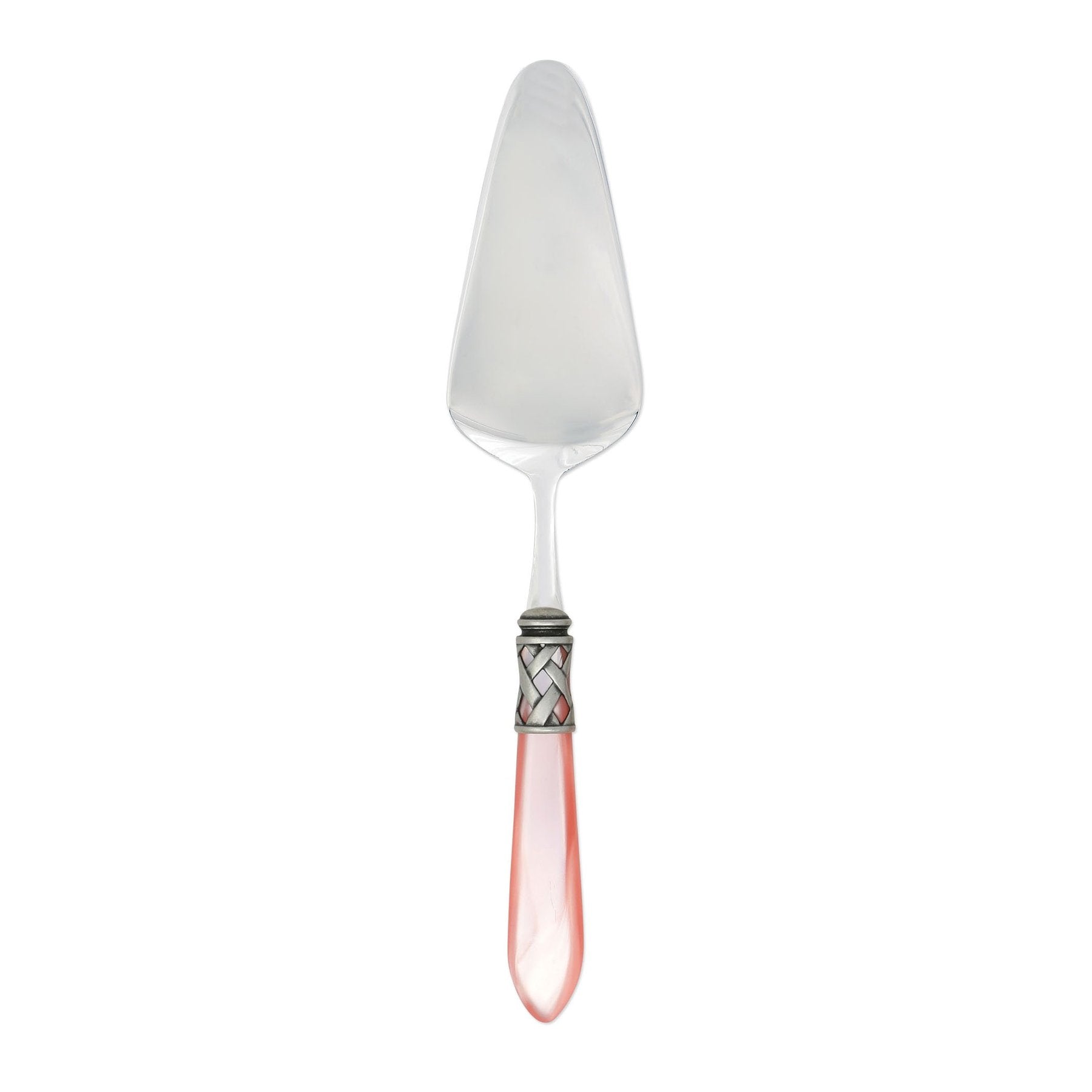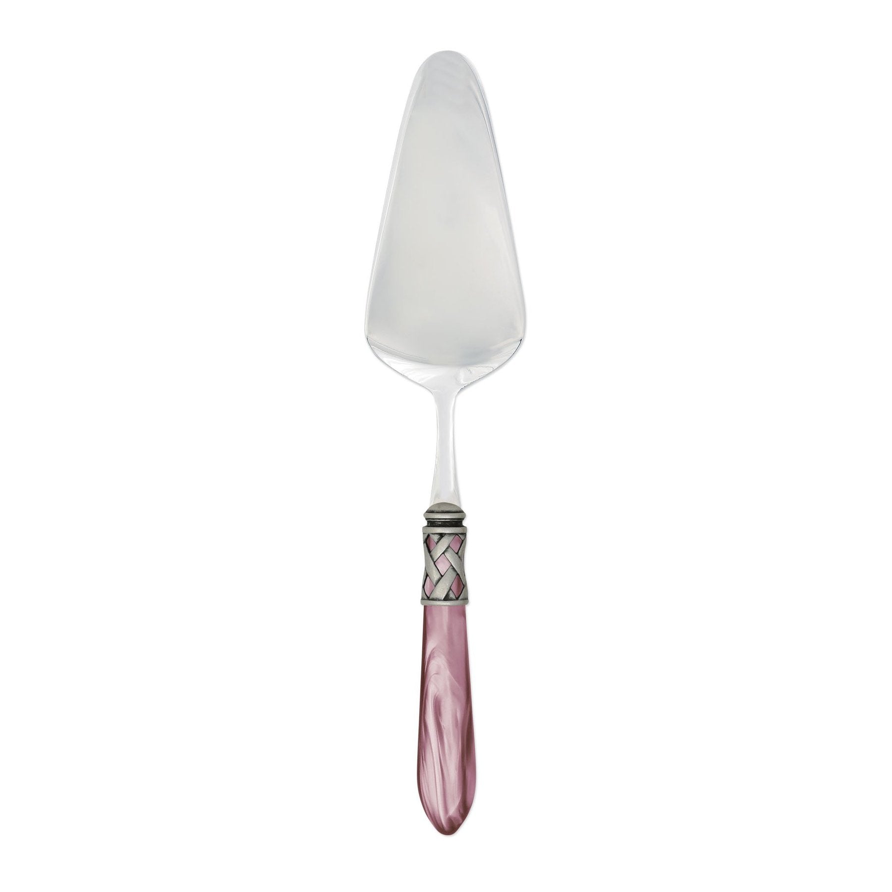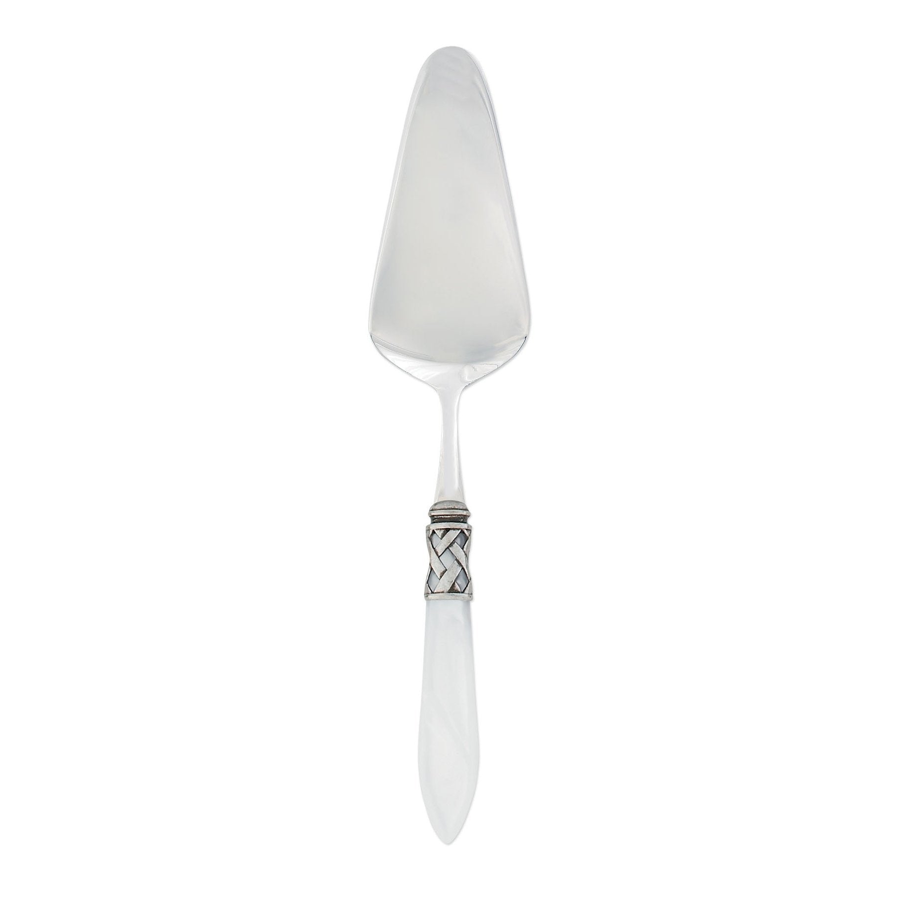 TheVietri Aladdin Antique Pastry Server features an antiqued silver plate lattice with elegant pearlized handles, and 18/10 stainless steel.  Made by Bugatti in Lumezzane, Italy.