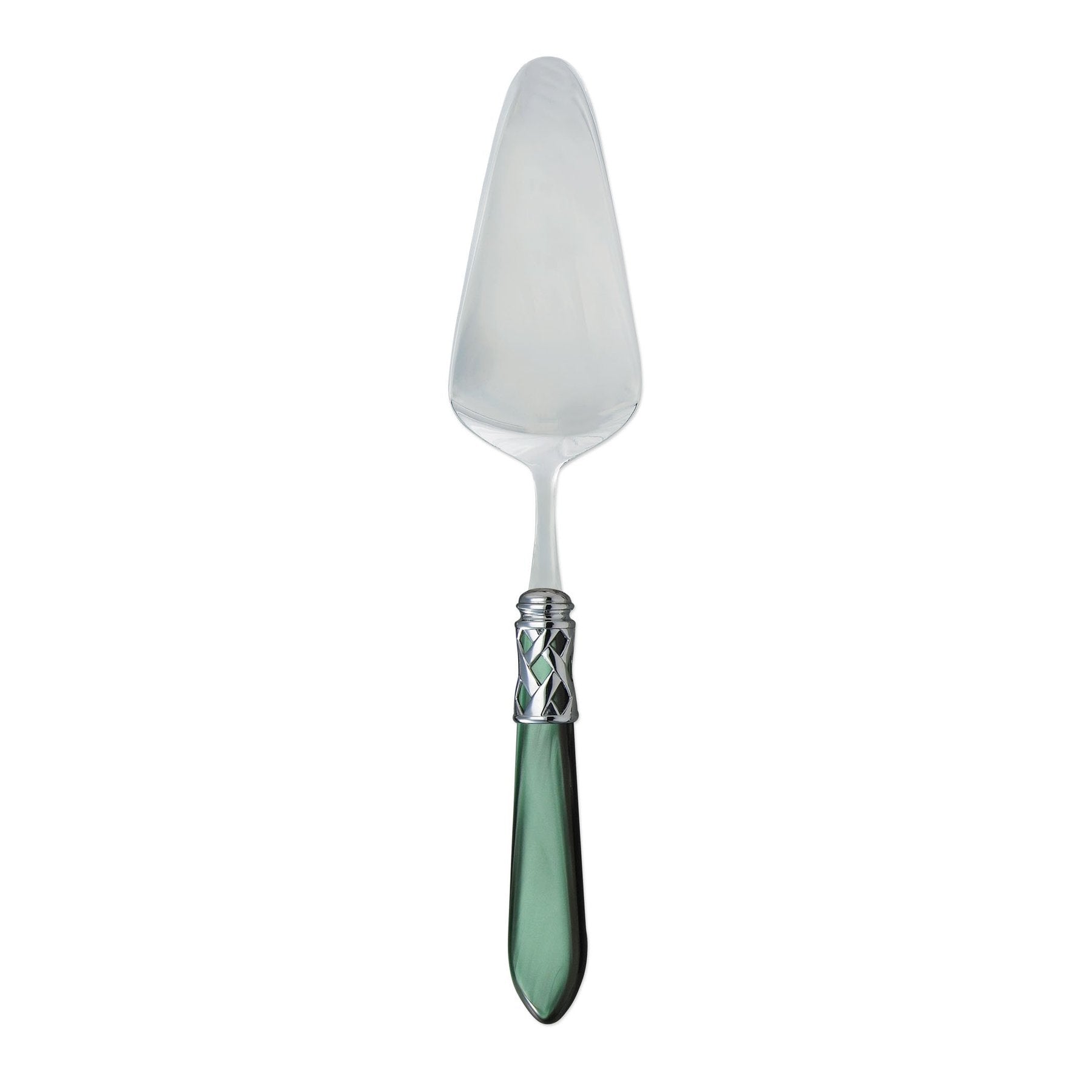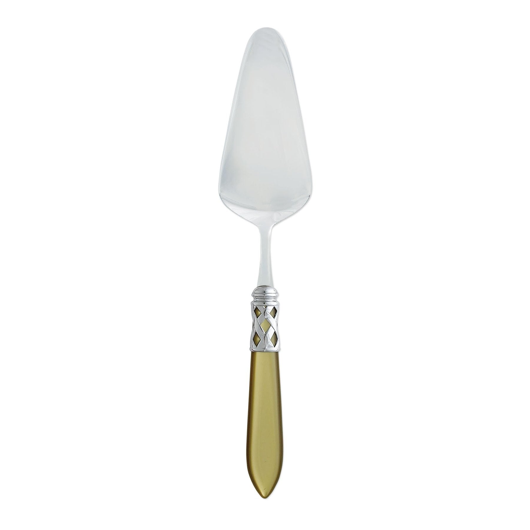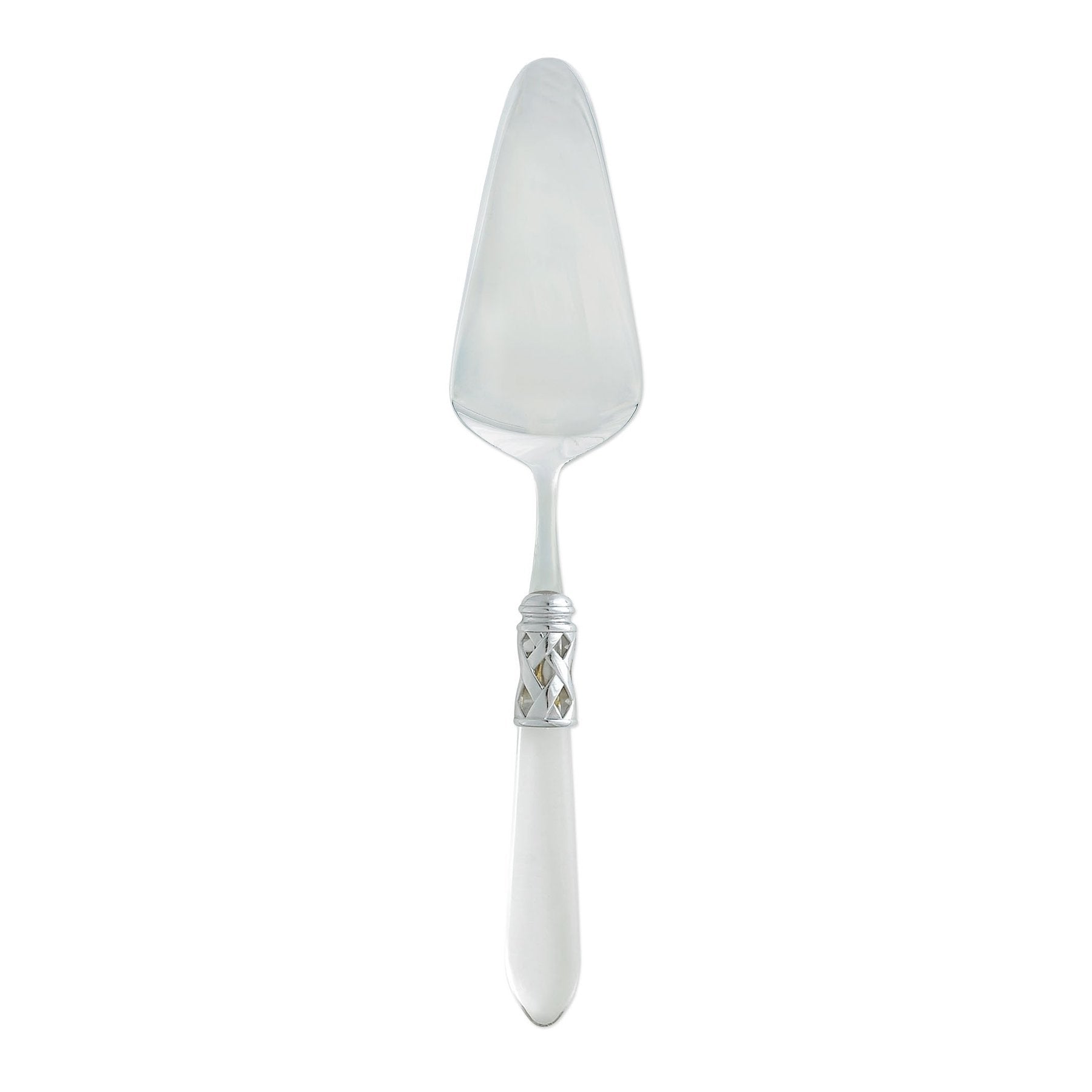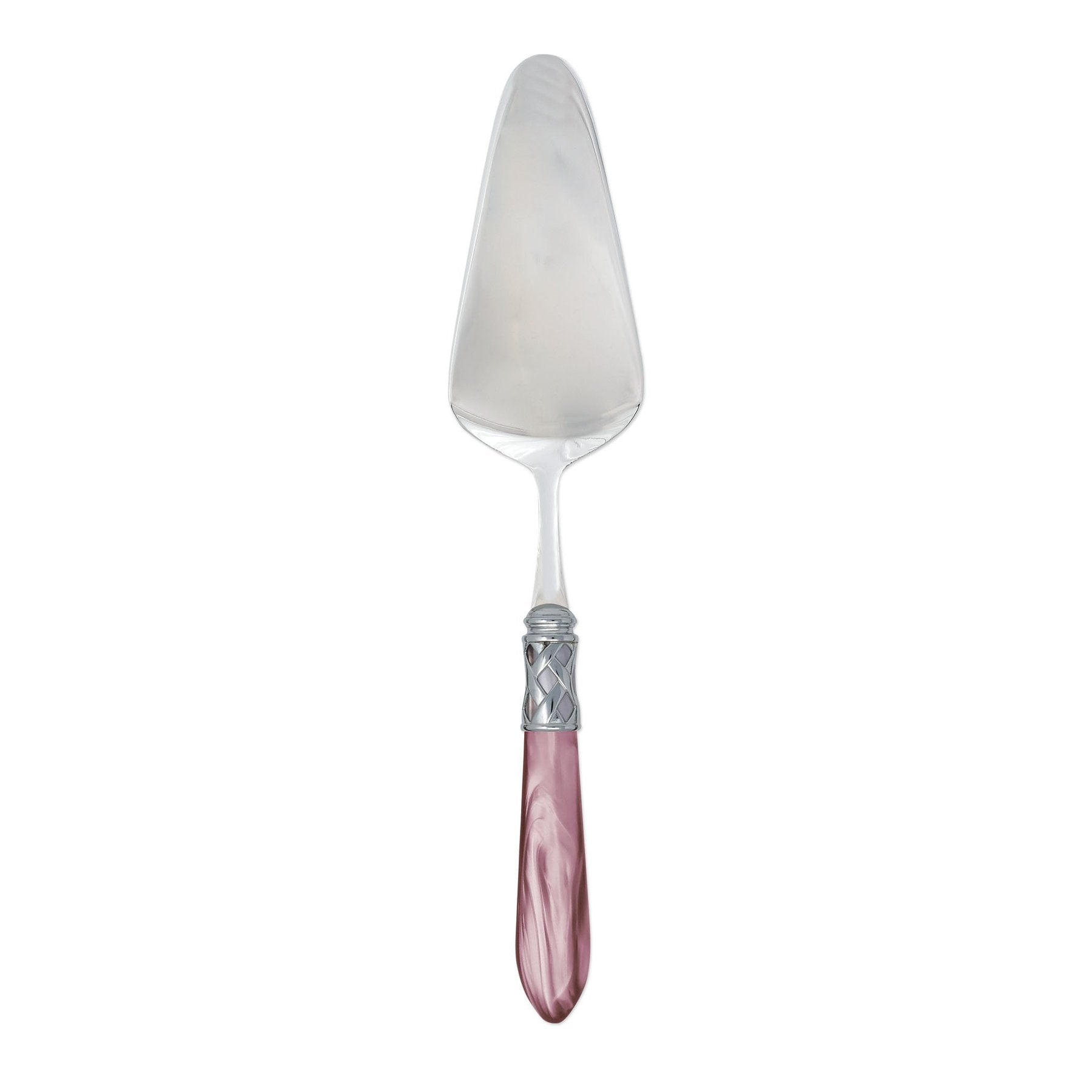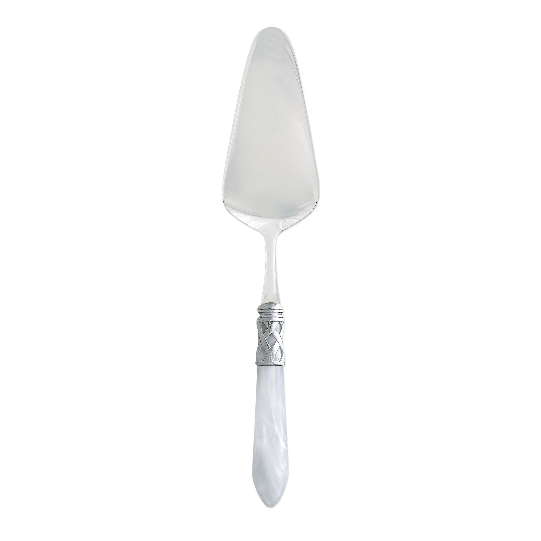TheVietri Aladdin Brilliant Pastry Server features an shiny silver lattice cuff with elegant pearlized handles, and 18/10 stainless steel.  Made by Bugatti in Lumezzane, Italy.