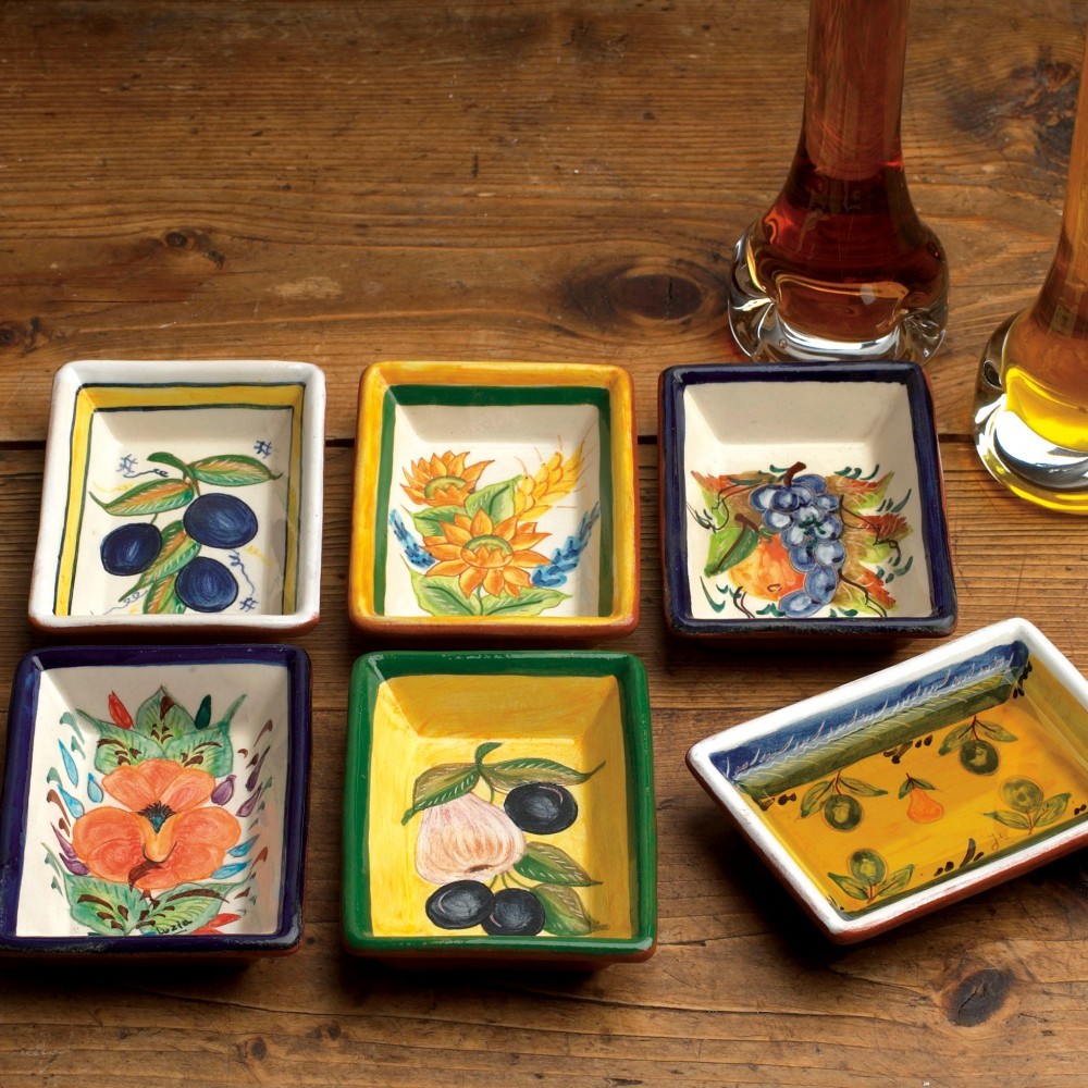The Casafina Alentejo Terracotta Blossom Condiment Plate is hand-painted dinnerware by the hands of master artisans.  High-fired terracotta   Made in Portugal.