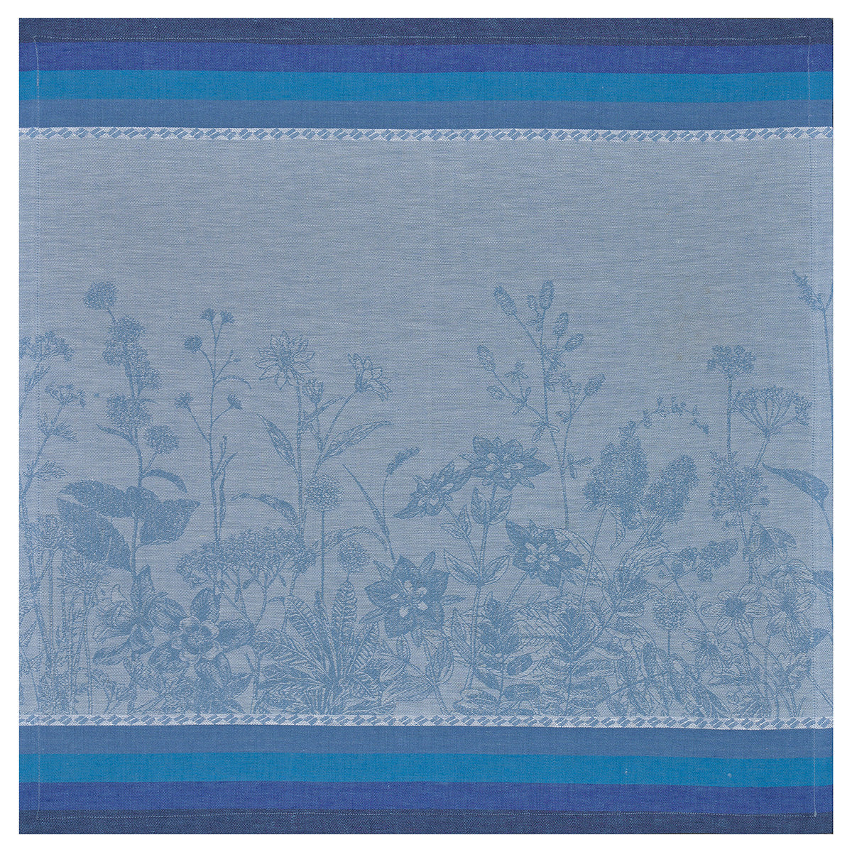 The Le Jacquard Francais Instant Bucolique Blue Napkin is an ode to nature, simplicity, and the rural. A linen collection, enchanting, flowery, where cosmos, aster, daisy, buttercup and grass are in perfect harmony. Napkin is 100% linen damask. Made in France.