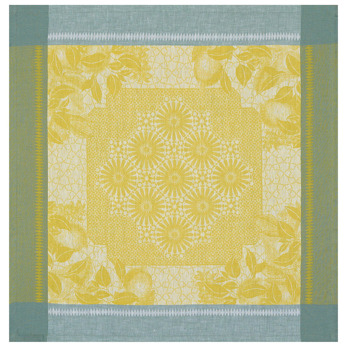 The Le Jacquard Francais Jardin d'Orient Yellow Napkin takes its inspiration from palms and the exotic plant life of the orient. Napkin is 100% linen damask. Made in France.