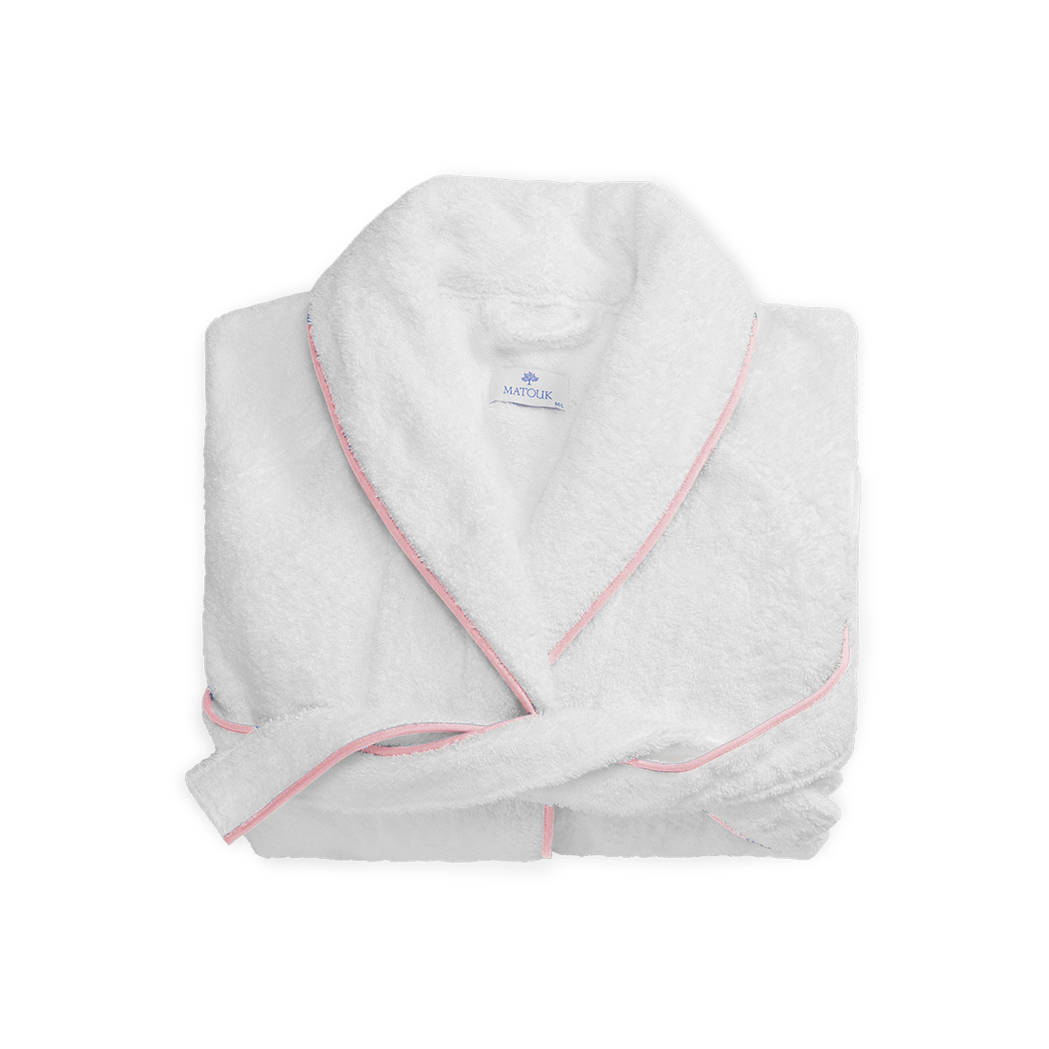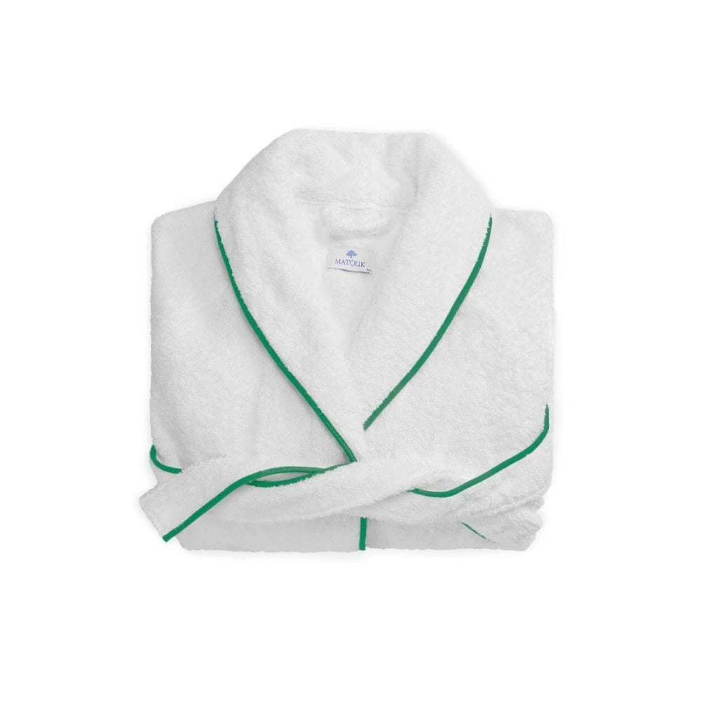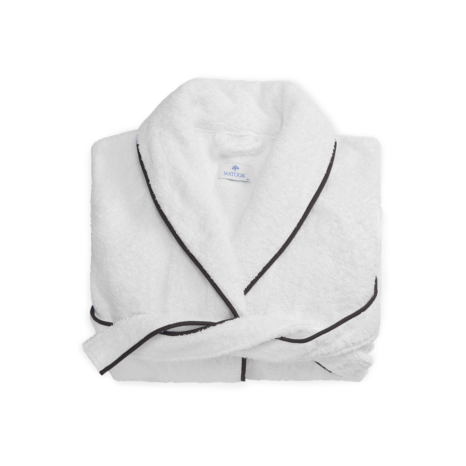 The Matouk Cairo Robe is a 625 gram, Egyptian cotton terry robe with piping. Available in White with White.Made in the USA.
